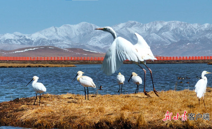 在河曲马场,棕头鸥、黑颈鹤、斑头雁等珍稀鸟类正在此处停歇觅食,吸引着众多观鸟爱好者与生态摄影师前来打卡拍照;在阿万仓湿地,河流纵横、水草丰美,藏原羚、岩羊、草原鹰等野生动物频繁出没,成为游客向往的“高原绿海”“生态秘境”;在欧拉镇克琼湖,野生鱼类种群丰富,如今这里湖水清澈见底、水质优良率100%,成为高原湖泊生态治理的标杆,也为当地牧民带来生态旅游红利。