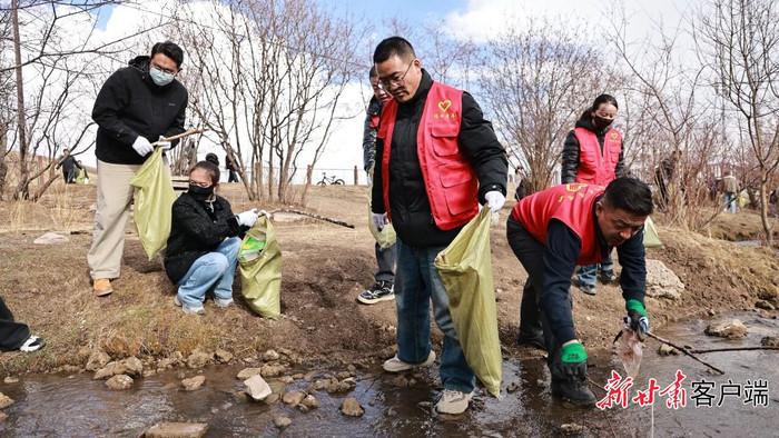 玛曲县干部群众清理河道垃圾。本文图片均由玛曲县融媒体中心提供